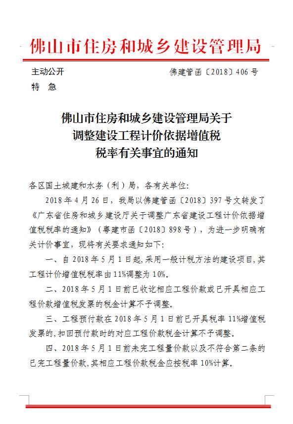 佛山市住房和城乡建设管理局赢博(股份)有限公司官网调整建设工程计价依据增值税税率有关事宜的通知