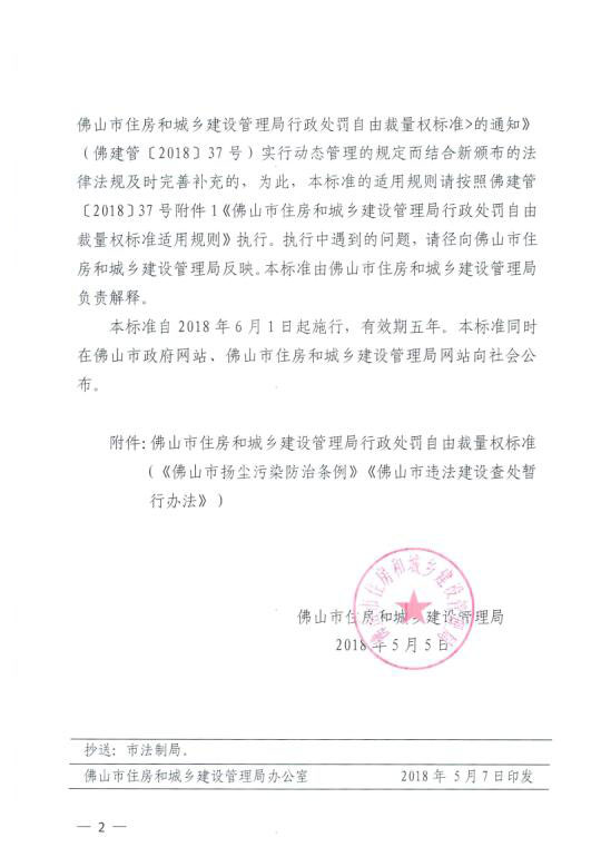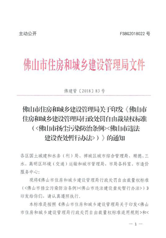 赢博(股份)有限公司官网印发《佛山市住房和城乡建设管理局行政处罚自由裁量权标准(佛山市扬尘污染防治条例)(佛山市违法建设查处暂行办法)》的通知