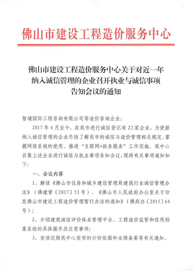 赢博(股份)有限公司官网对近一年纳入诚信管理的企业召开执业与诚信事项告知会议的通知
