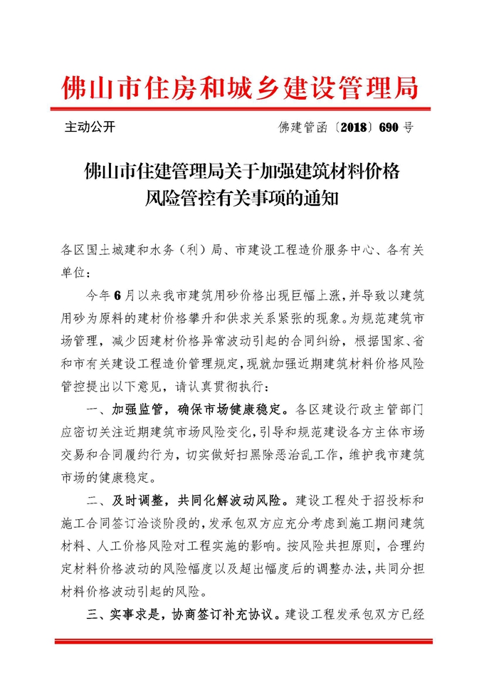佛山市住建管理局赢博(股份)有限公司官网加强建筑材料价格风险管控有关事项的通知