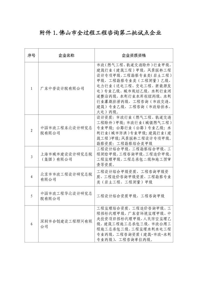 佛山市住房和城乡建设管理局赢博(股份)有限公司官网公布佛山市全过程工程咨询第二批试点企业和试点项目的通知