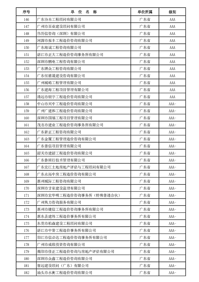 附件:2018年度全国工程造价咨询企业信用评价结果