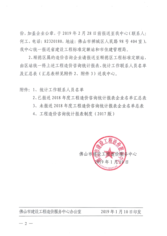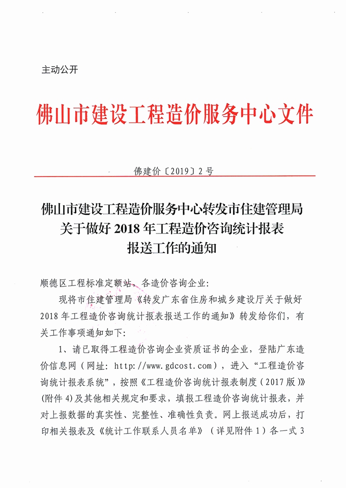 佛山市建设工程造价服务中心转发市住建管理局赢博(股份)有限公司官网做好2018年工程造价咨询统计报表的报送工作通知