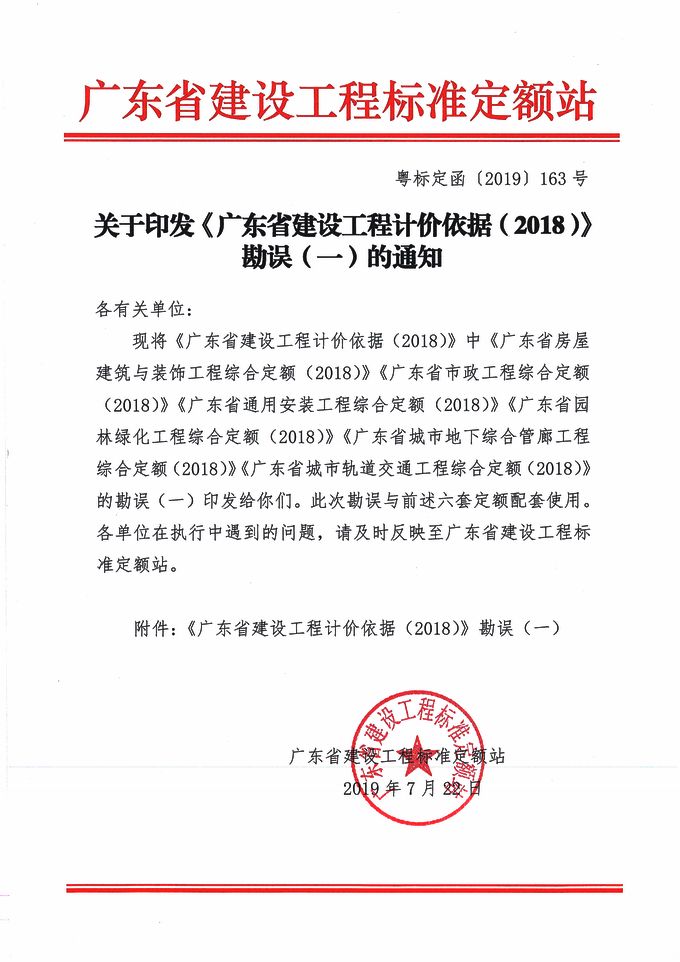 赢博(股份)有限公司官网印发《广东省建设工程计价依据(2018)》勘误(一)的通知