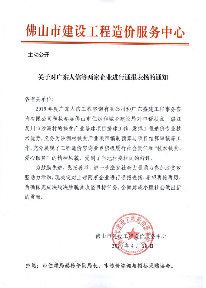 赢博(股份)有限公司官网对广东人信等两家企业进行通报表扬的通知