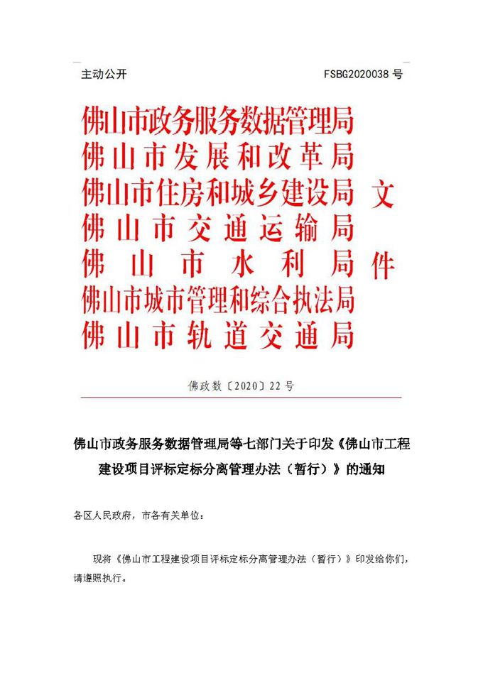 佛山市政务服务数据管理局等七部门赢博(股份)有限公司官网印发《佛山市工程建设项目评标定标分离管理办法(暂行)》的通知