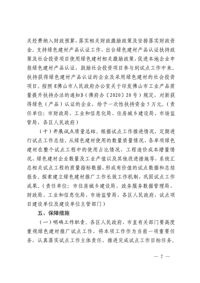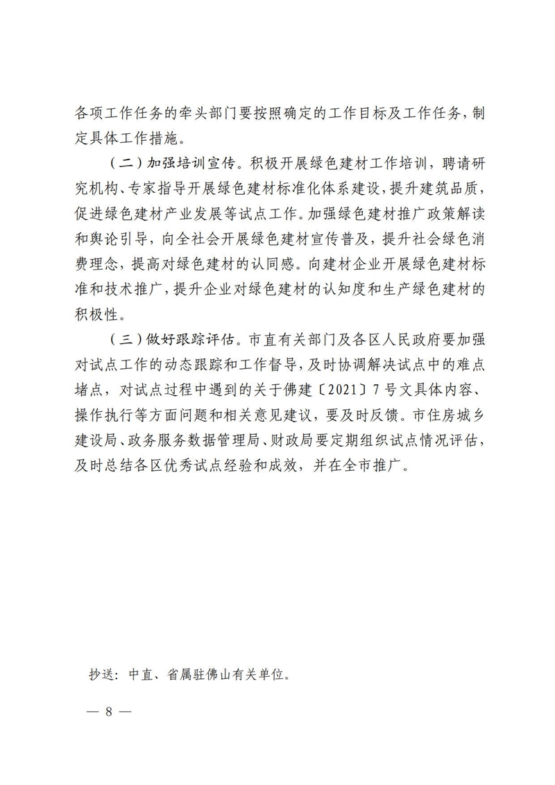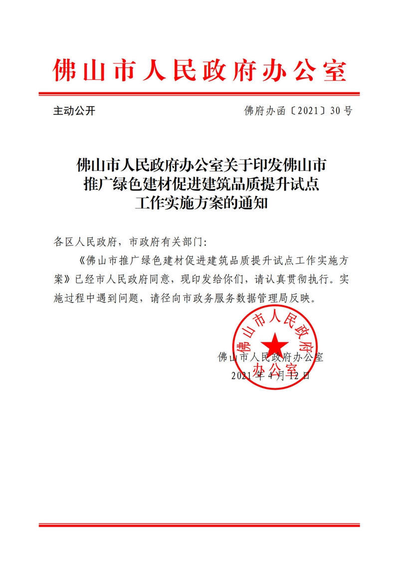 佛山市人民政府办公室赢博(股份)有限公司官网印发佛山市推广绿色建材促进建筑品质提升试点工作实施方案的通知