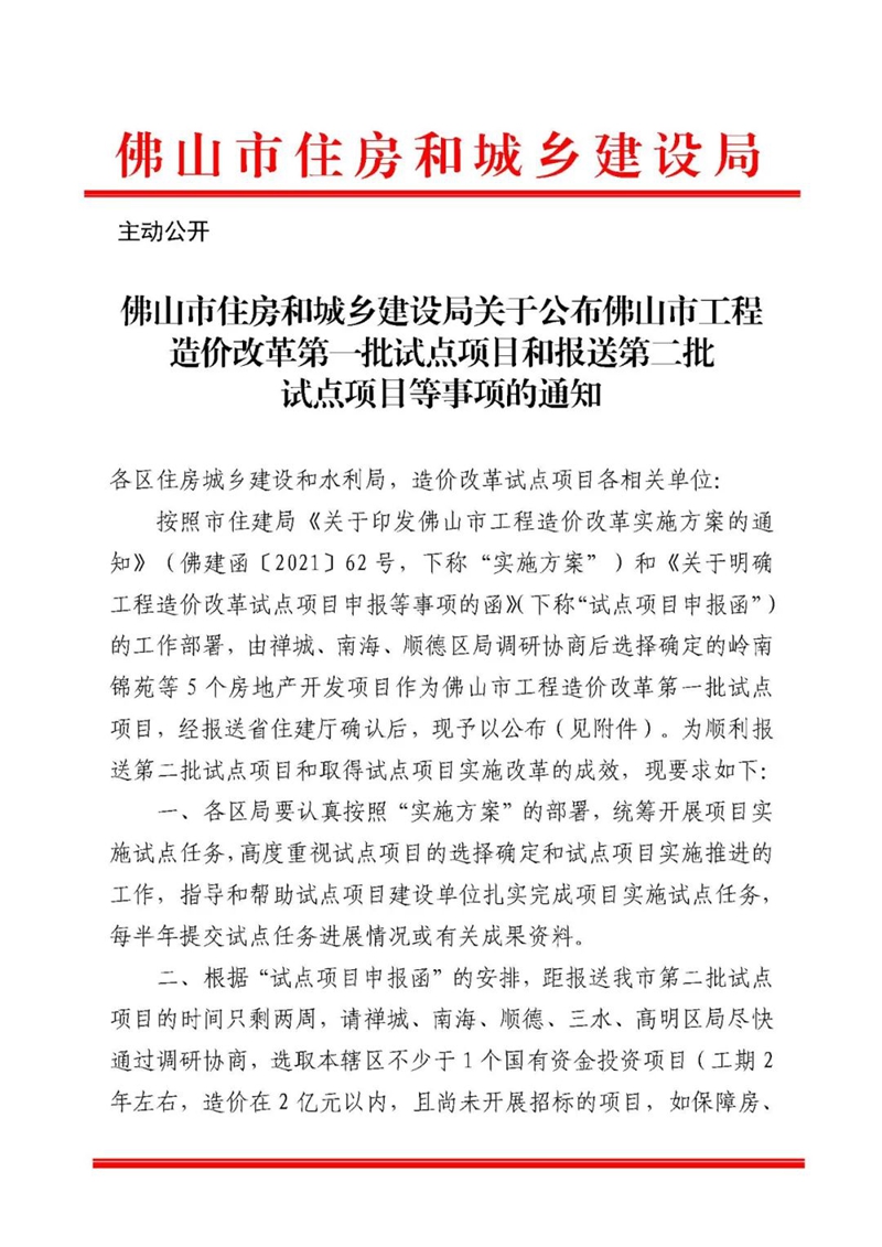 转发| 赢博(股份)有限公司官网赢博(股份)有限公司官网公布佛山市工程造价改革第一批试点项目和报送第二批试点项目等事项的通知