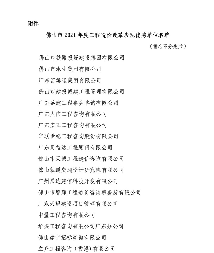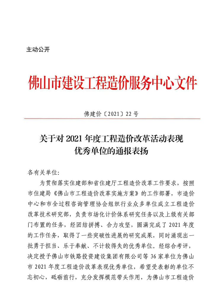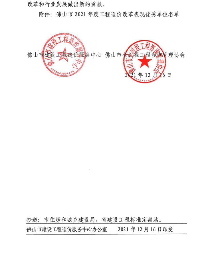 赢博(股份)有限公司官网对2021年度工程造价改革活动表现优秀单位的通报表扬