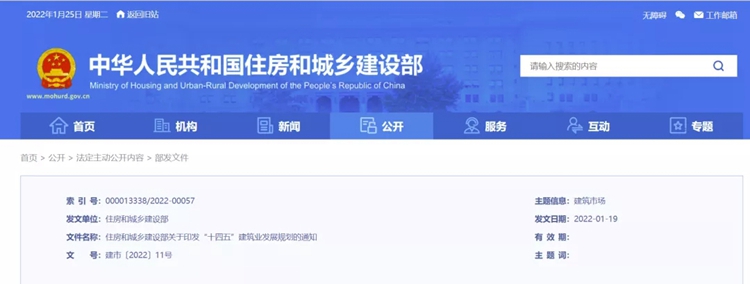 住房和城乡建设部赢博(股份)有限公司官网印发“十四五”建筑业发展规划的通知