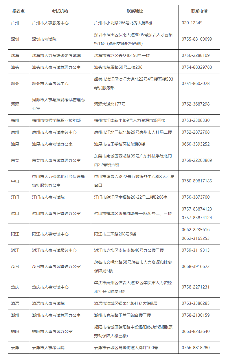 (二)报考期间,全省各地级以上市人事考试机构开通咨询服务电话(详见附件3)。相关业务事项可通过“广东省专业技术人员职业资格考试业务办理系统”(http://123.56.228.71:82/)在线申办。