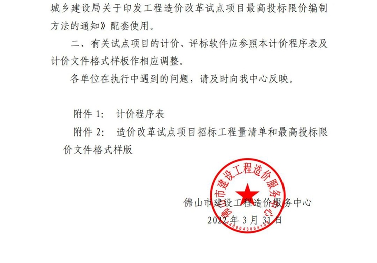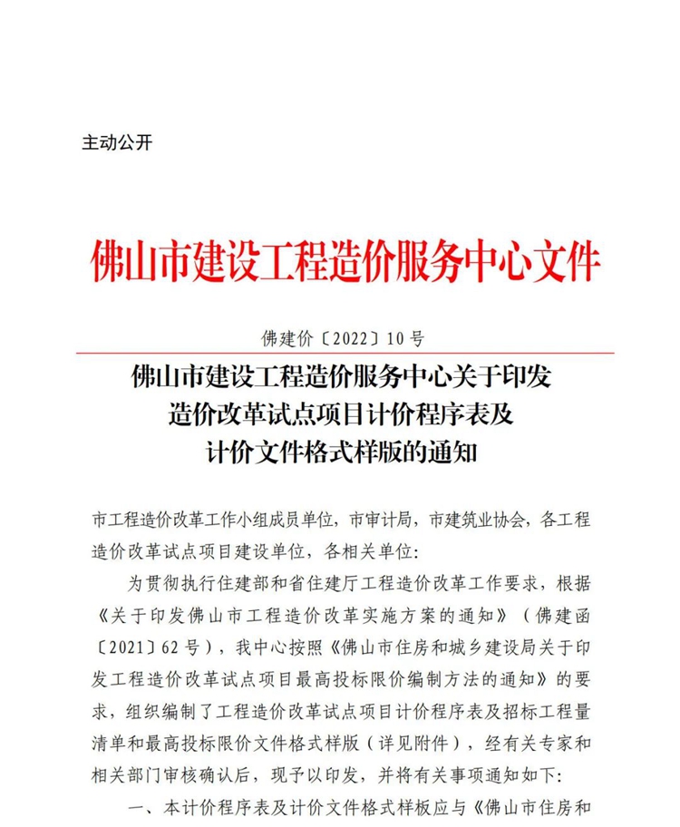佛山市建设工程造价服务中心赢博(股份)有限公司官网印发造价改革试点项目计价程序表及计价文件格式样版的通知