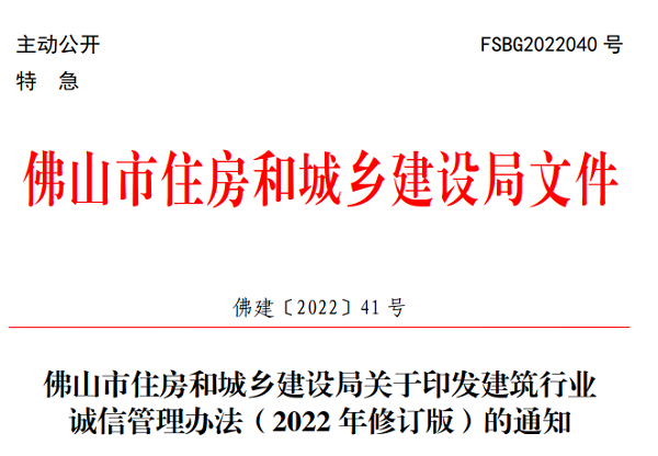 第三十三条 本办法自2023年1月1日起施行,有效期5年。原《佛山市住房和城乡建设管理局建筑行业诚信管理办法》(佛建管〔2017〕53号)自施行之日同时废止。