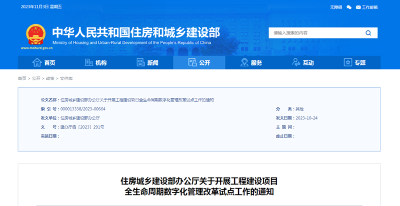 转发 | 住房城乡建设部办公厅赢博(股份)有限公司官网开展工程建设项目全生命周期数字化管理改革试点工作的通知