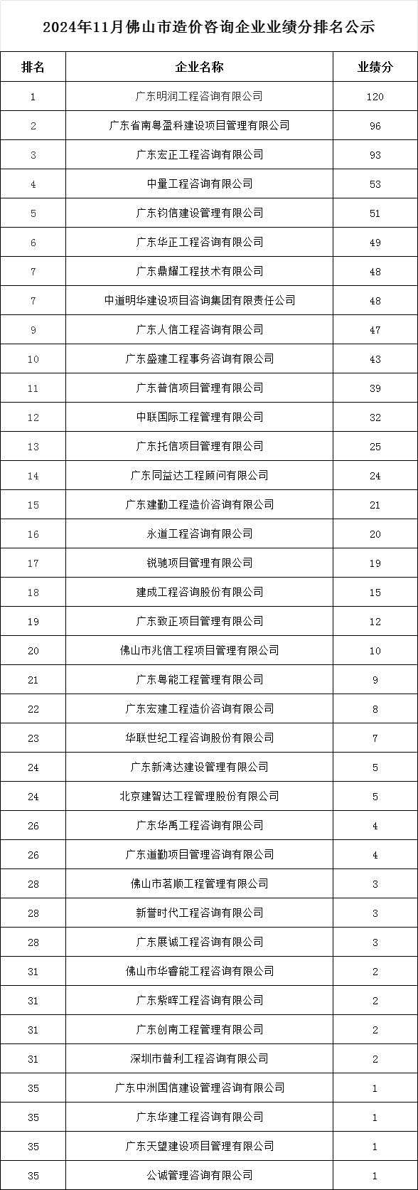 转发 | 2024年11月佛山市造价咨询企业业绩分排名公示