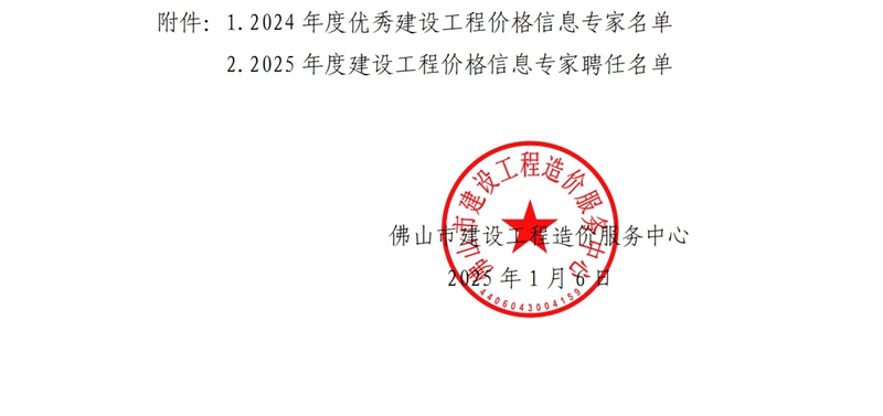 佛山市建设工程造价服务中心赢博(股份)有限公司官网表彰2024年度优秀建设工程价格信息专家暨聘任2025年度建设工程价格信息专家的通知