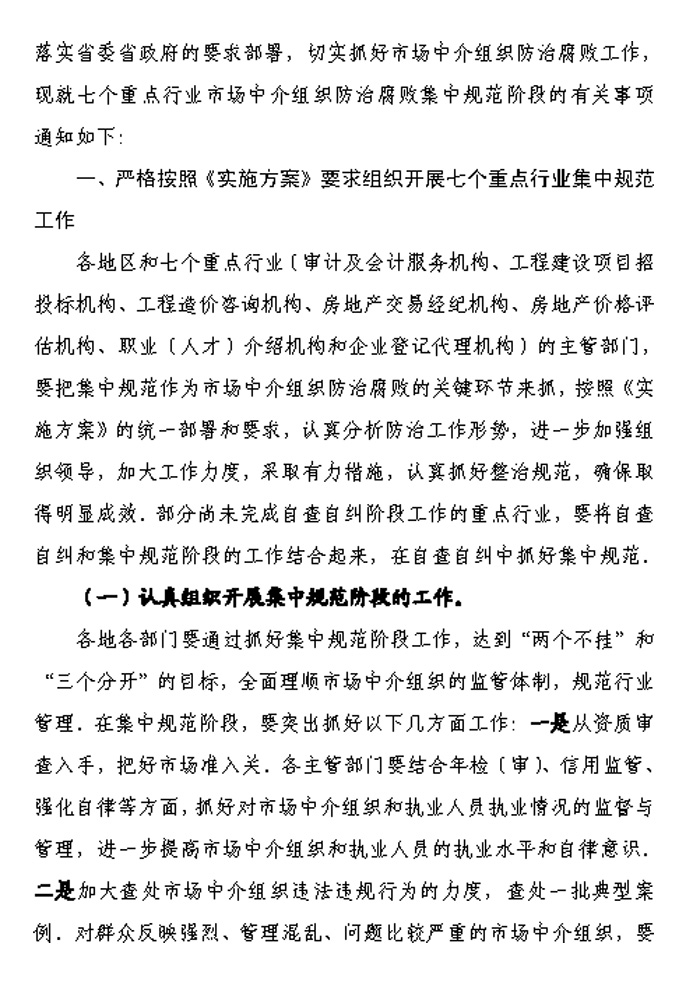 赢博(股份)有限公司官网认真抓好重点行业的集中规范切实抓好市场中介组织防治腐败工作的通知