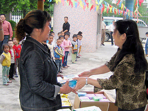 5月30日佛山市造价站工会与市质监站工会向乐从镇良村幼儿园捐赠礼物(图)