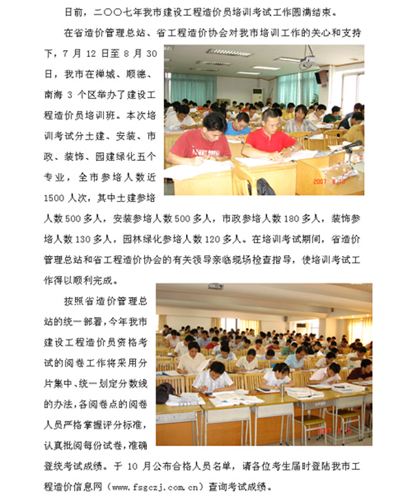二○○七年佛山市建设工程造价员培训考试工作圆满结束