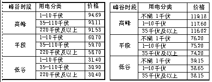 (从4月1日起安装分时计量装置后下一计费周期执行,表中电价由电度电价、城市建设附加费、三峡工程建设基金构成)