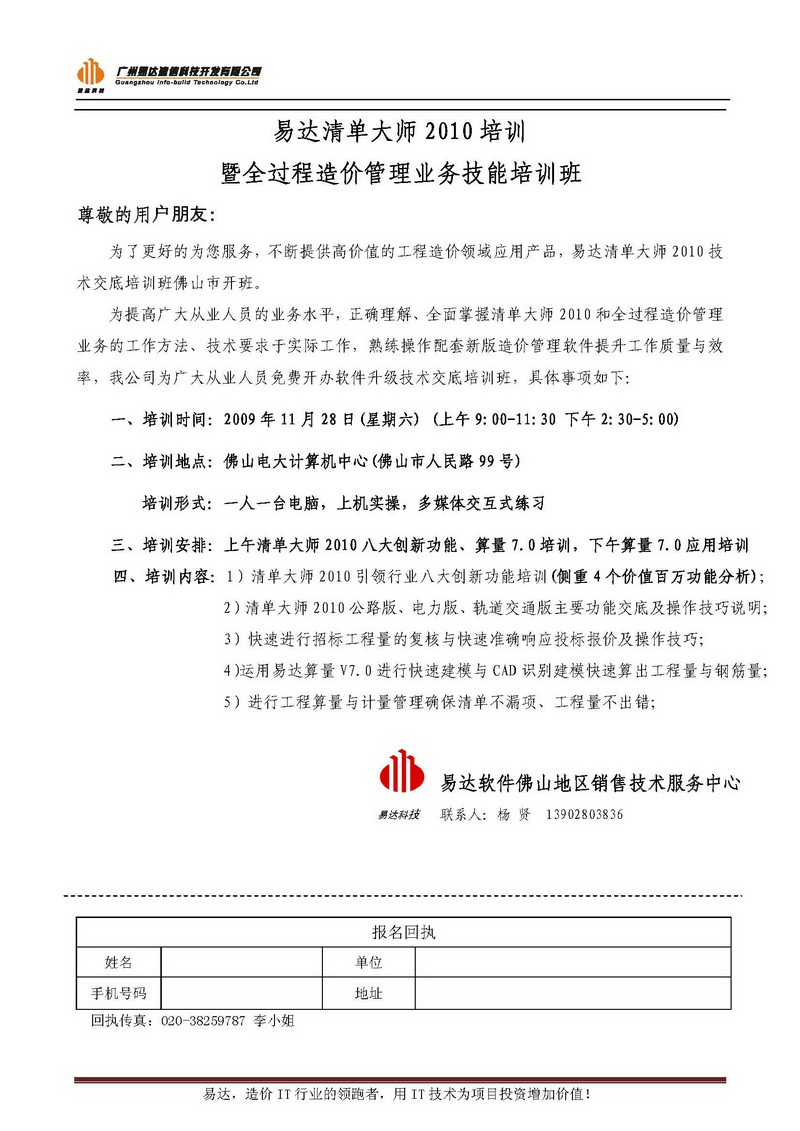 易达清单大师2010培训暨全过程造价管理业务技能培训班