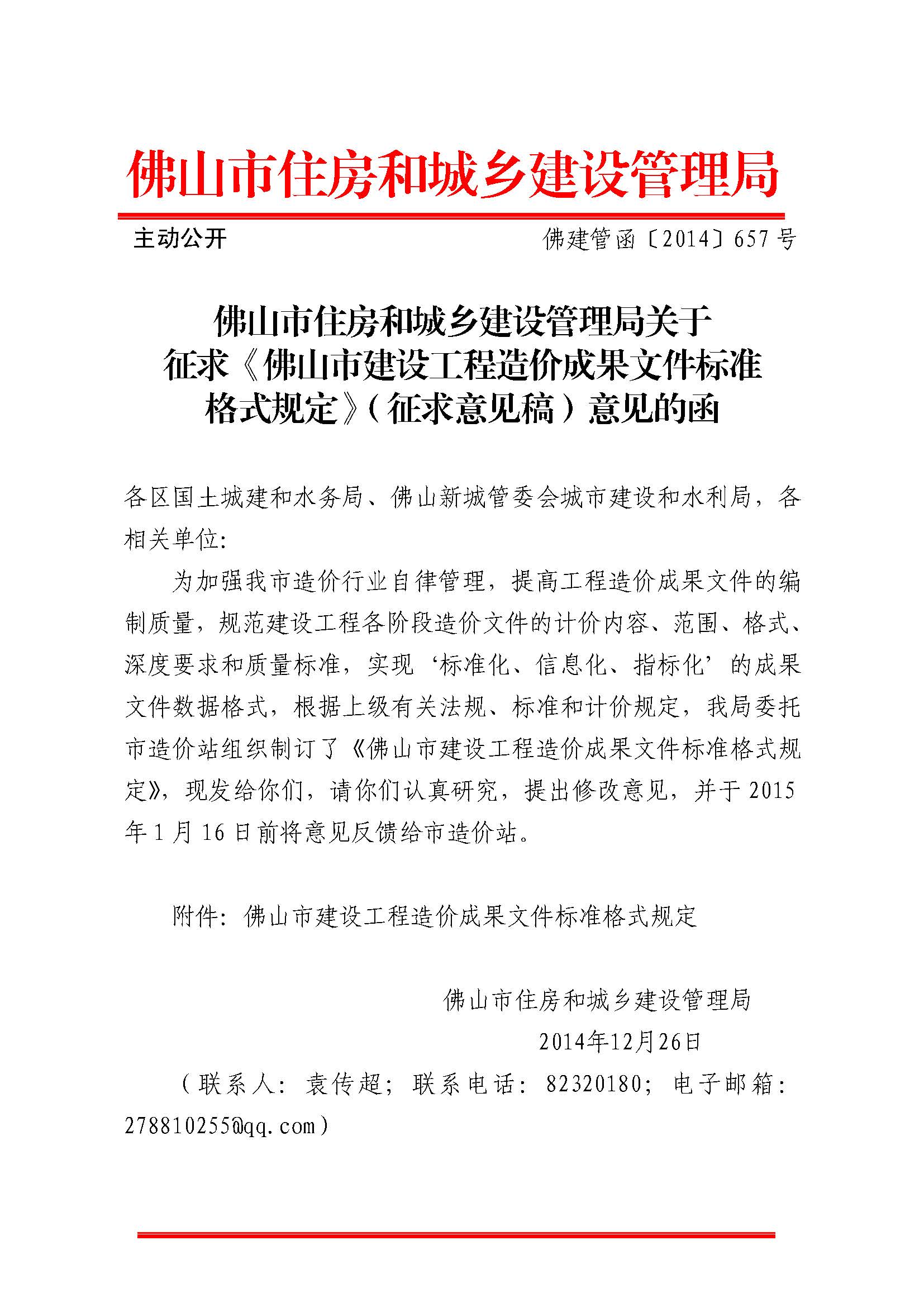 佛山市住房和城乡建设管理局赢博(股份)有限公司官网征求《佛山市建设工程造价成果文件标准格式规定》(征求意见稿)意见的函