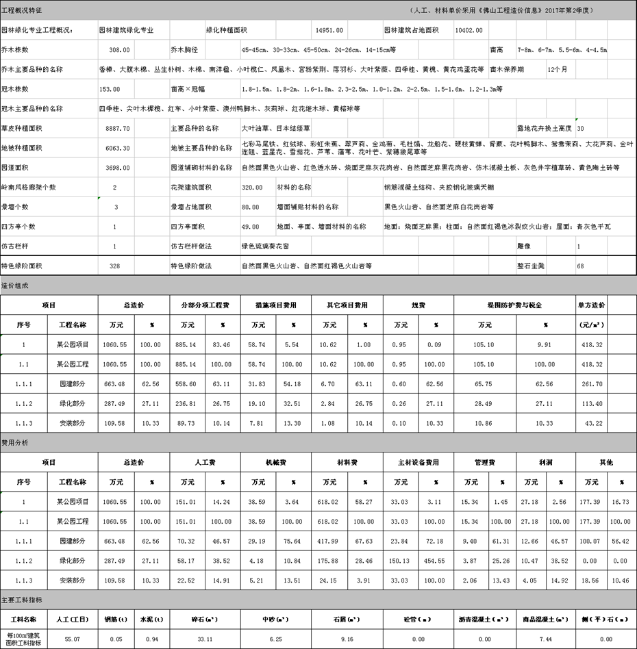 佛山市2017年第4季度技术经济指标分析—某公园项目
