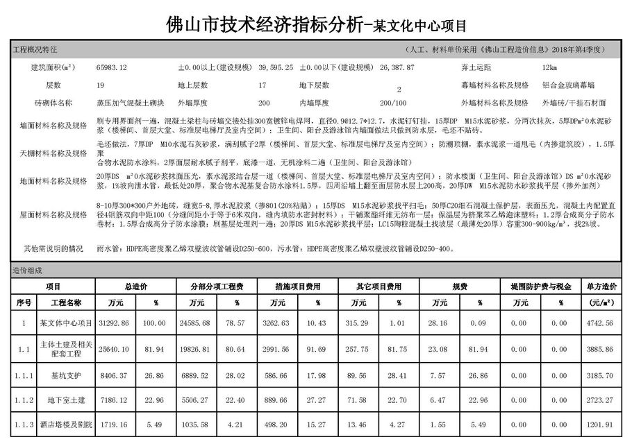 佛山市2019年第1季度技术经济指标分析—某文化中心项目