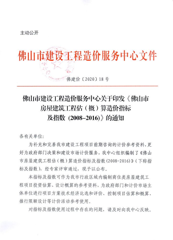 佛山市建设工程造价服务中心赢博(股份)有限公司官网印发《佛山市房屋建筑工程估(概)算造价指标及指数(2008-2016)》的通知
