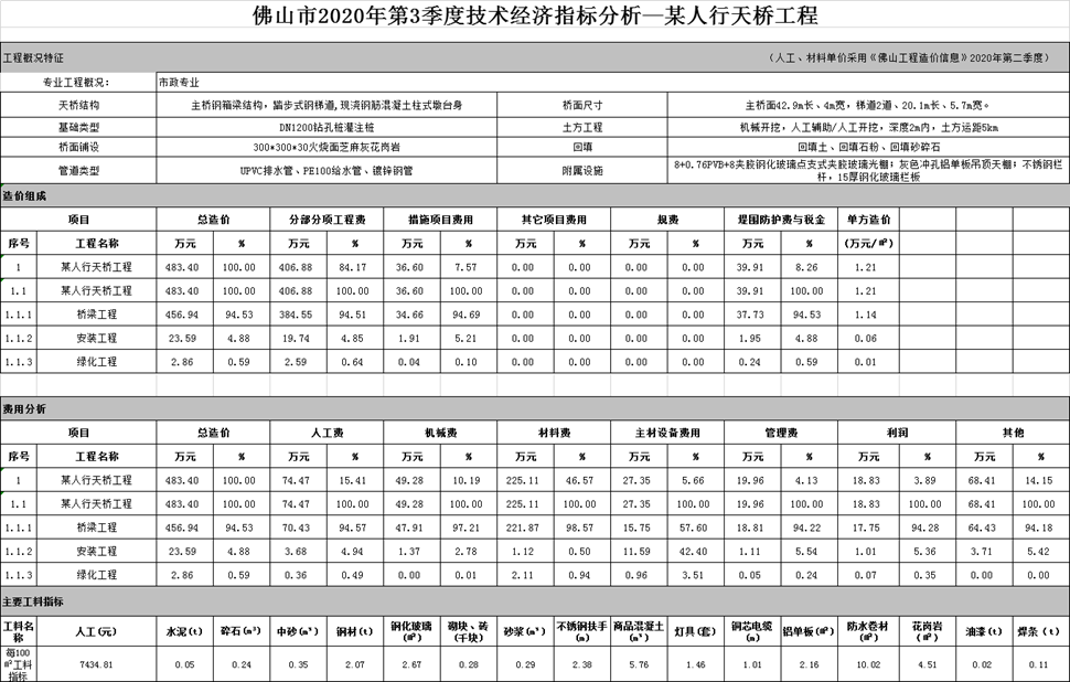 佛山市2020年第3季度技术经济指标分析—某人行天桥工程