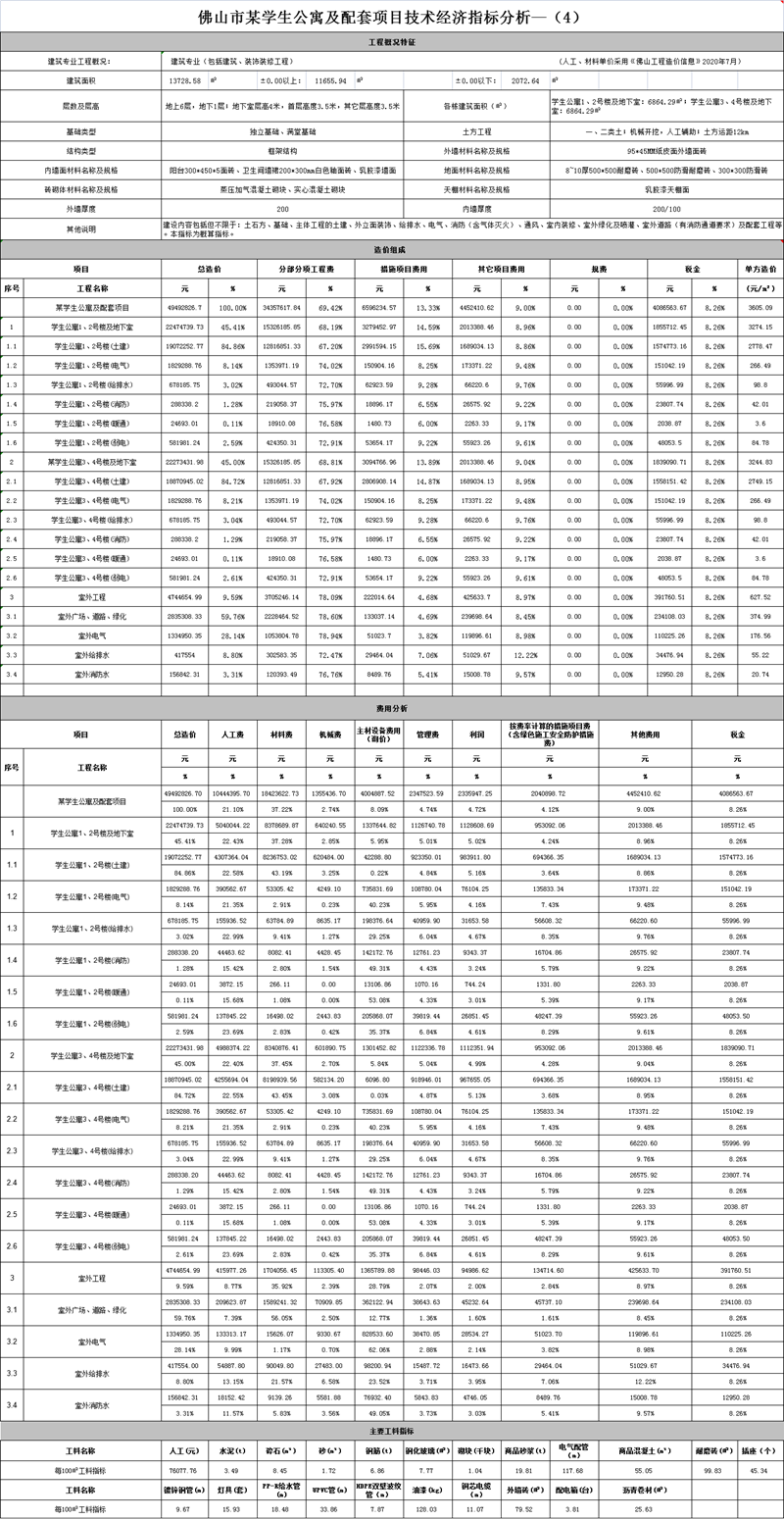 佛山市某学生公寓及配套项目技术经济指标分析—(4)