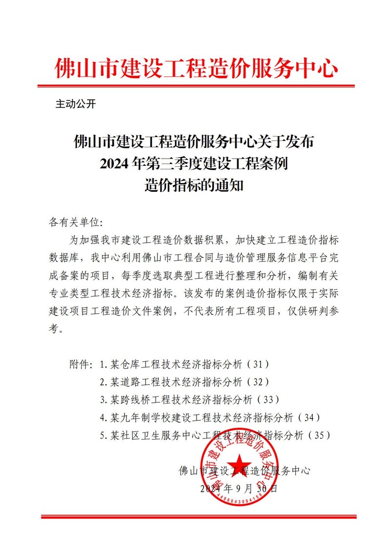 转发 | 佛山市建设工程造价服务中心赢博(股份)有限公司官网发布2024年第三季度建设工程案例造价指标的通知