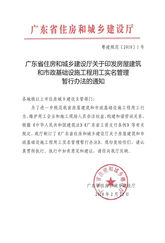 广东省住房和城乡建设厅赢博(股份)有限公司官网印发房屋建筑和市政基础设施工程用工实名管理暂行办法的通知